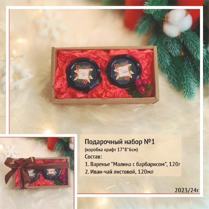 Новогодние наборы от 385 руб. В составе разнообразные лакомства (деликатесы, варения, соления, чаи), а также сувениры (мыло, кружки)